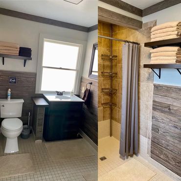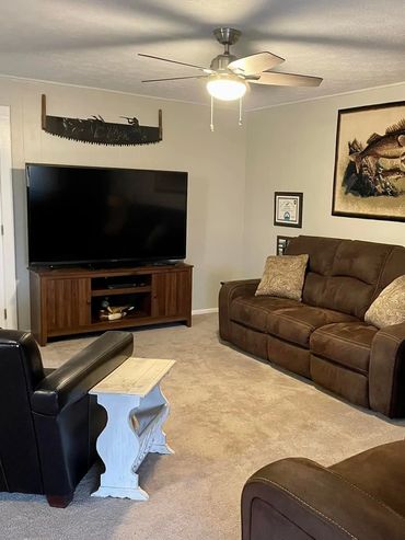 A large yard with a large deck in the back is perfect for outdoor gatherings. Ample seating, a grill, fire pit and cornhole is all included in your stay. Our Lodging is offered year round weather your fishing, hunting, weekend getaway or family vacation.